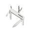 Material: rostfreier Stahl Funktionen: grosse und kleine Klinge, Dosenöffner, Schraubendreher, Korkenzieher, Ahle, Zahnstocher, Pinzette, Kapselheber, Drahtabisolierer, Ring